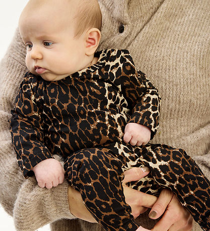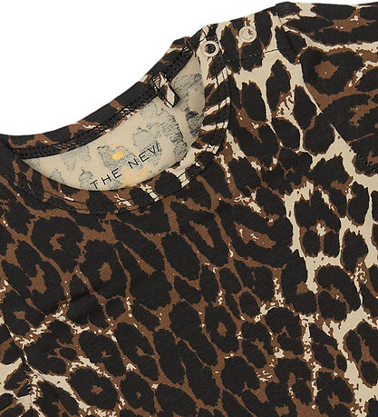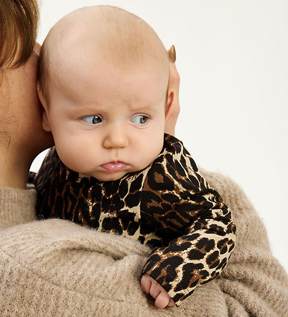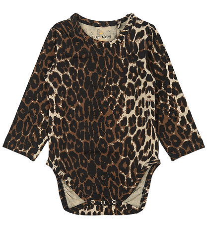 Fantastisk body fra The New Siblings med et vakkert over alt leopardmønster i varme fargetoner. Bodyen lukkes med praktiske trykknapper over venstre skulder og mellom bena.
