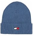 Vakker Tommy Hilfiger lue i navy strikk, og foran står det "Tommy Jeans" brodert i hvit med logo.