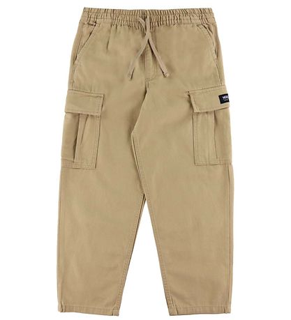 Stilige Vans bukser i en vakker beige nyanse. Buksene har praktiske sidelommer og knytting i midjen for optimal passform. Vans'ikoniske logo er subtilt plassert på den ene lommen, og fullfører det klassiske utseendet.