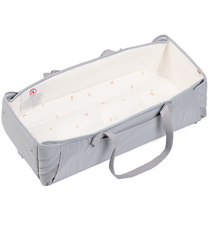 Deilig Voksi babylift i grå. På innsiden er den hvit med et trykk av små, beige vinger.