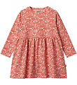 Vakker Wheat kjole med forskjellige trykk og striper i nyanser av grønt, beige og rødt.