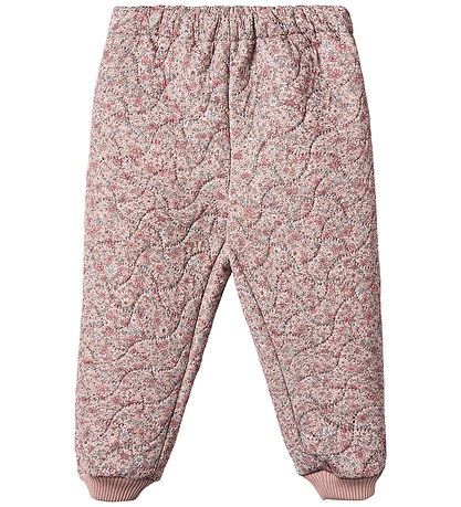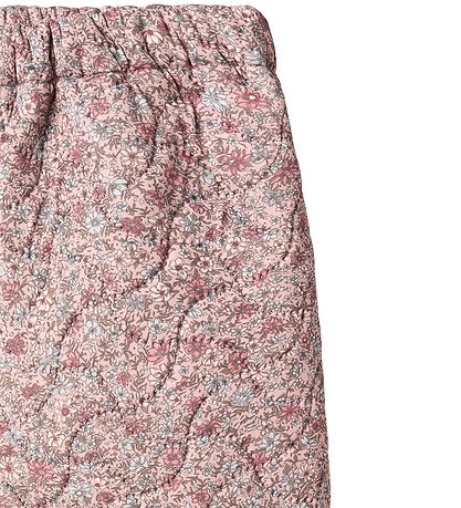 Fine Wheat termobukser i rosa med heldekkende blomstertrykk i lyseblå, grønne, hvite og rosa nyanser. Termobuksene har en bølget, quiltet struktur.