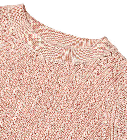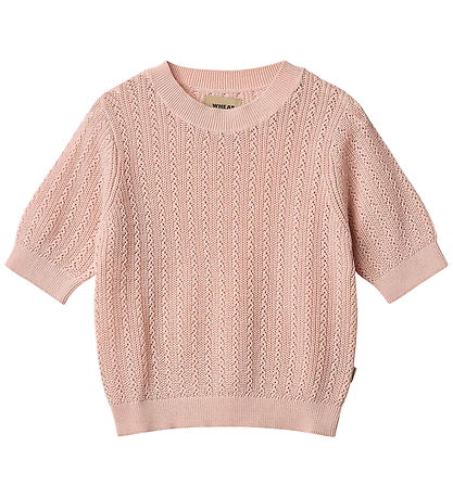 Elegant Wheat t-skjorte i en sart rosa. T-skjorten har en vakker åpen strikket struktur som gir et klassisk og stilig utseende. Den har brede ribbekanter i alle åpninger.