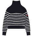 Fin Zadig & Voltaire genser i navy med smale, horisontale striper. Genseren er laget i en myk, strikket kvalitet.
