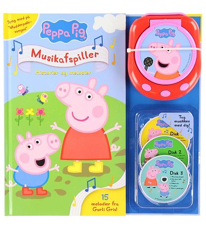 Rolig Alvilda-bok "Greta Gris 'Musikafspiller", bestående av boken, en musikspelare och 3 skivor med melodier.