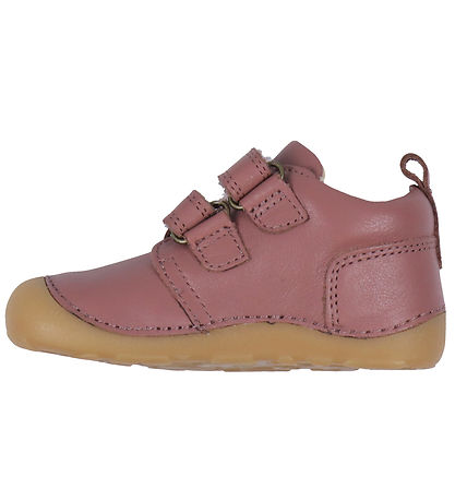 Nybörjarskorna är en barfotamodell, vilket innebär att de har mjuka och flexibla yttersulor utan hälsänkning, vilket främjar en naturlig gång och förbättrar balans och fotledsstabilitet. De mjuka yttersulorna ger barnet god kontakt med marken och under botten finns ett slitbanemönster som säkerställer bra fotfäste.