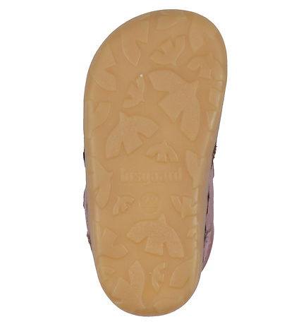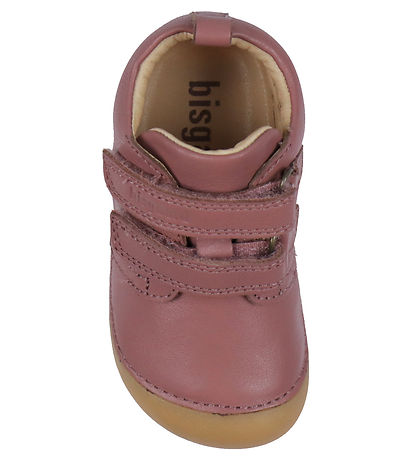 Vackra Bisgaard lära gå skor i mörkrosa läder.