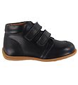 Bisgaard nybörjarskor stängs med kardborreband över vristen, så de enkelt och snabbt kan justeras till barnets fot. Insidan är i ljusbrunt läder med extra vaddering runt öppningen, och längst ner finns mjuka, uttagbara innersulor. Nybörjarskorna har en bred tåbox, så det finns plats för tårna att röra sig fritt. Yttersulorna går upp över tå och häl, så skorna är väl skyddade mot slitage.