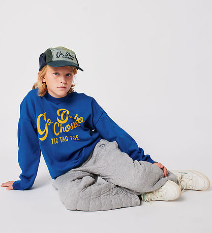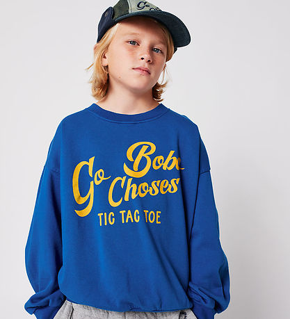 Härlig Bobo Choses sweatshirt i klar med ett gult "Go Bobo Choses Tic Tac Toe "tryck blå.