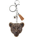 Fine By Stær nyckelring formad som en svan i brun med små strass i brun och silver. Nyckelringen är gjord av silver med ett runt hänge och ett hänge med bruna fransar. Nyckelringen Fast enkelt i en väska och tillsammans med dina nycklar.