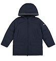 Täckejackan har ett svart, slätvävd foder och den har en varm polyestervaddering.