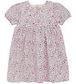 blå Creamie klänning med långa ärmar i en vacker mörk färg, dekorerad med fina blommiga broderier och en elegant volangkant vid halsringningen. Perfekt för alla tillfällen med detaljer som sticker ut.