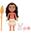 Fin Disney Princess Vaiana 2 docka, föreställande Vaiana i hennes kläder från filmen och med accessoarer i form av tuppen Heihei, en trumpetsnäcka, en åra, hårklippsblommor och en sjöstjärna. Dockan kan spela musik från filmen, är rörlig, har en avtagbar outfit och långt, verklighetstroget hår.