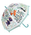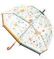 Djeco-paraplyet har formen av en sjöboll, så det skyddar barnet väl från regnet. Skärmen är lätt att fälla upp och in och stången har ett böjt handtag så att barnet har ett bra grepp på paraplyet.