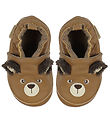 En Fant skinntofflorna har en slip-on -form, så de är lätta att ta på och av. Det finns en kort rem baktill, vilket gör det enkelt att ta på skinntofflorna. Skinntofflorna har en mjuk botten av läder.