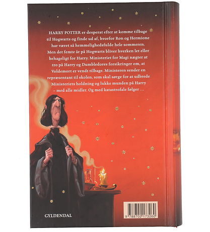 Gyldendal boken är en spännande berättelse om Harry och Dumbledore som försöker övertyga det envisa Magiministeriet om att Voldemort har återvänt. Harrys femte år kommer sannerligen inte att bli lätt med en stor katastrof som hotar skolan, Dumbledore och inte minst Harry och hans vänner. Hela tiden blir Voldemort starkare och starkare.