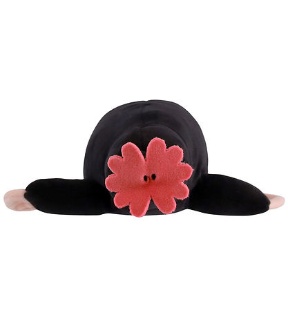 Söt Hug A Lumps gosedjur formad som en mullvad i svart med rosa detaljer.