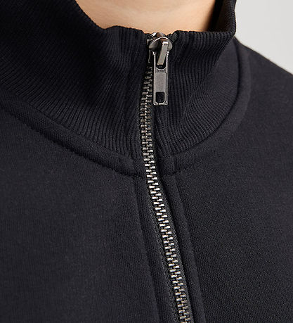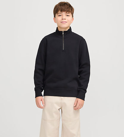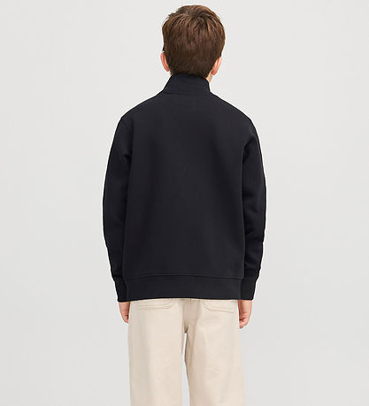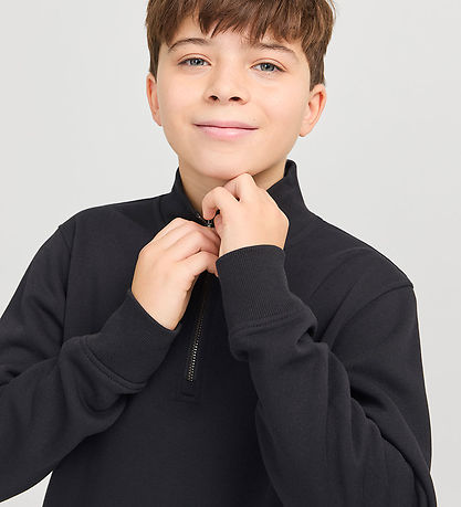 Snygg Jack & Jones sweatshirt i enfärgad svart. Jack & Jones sweatshirtan har långa ärmar, hög krage och en praktisk dragkedja i halsöppningen, vilket ger en modern look. Sweatshirtan har breda ribbade muddar/ribbad mudd i alla öppningar, vilket säkerställer en tidlös design.