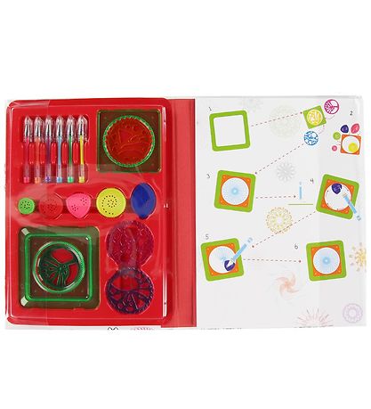 Carrusel Forlag målarbok består av en tom målarbok. Du placerar en spiralram på papperet, sätter in ett spiralhjul i det, tar kulspetspinnen nerför ett av hålen och kör runt längs ramens kant. Detta skapar oändliga vackra mönster i många färger som barnet kan ha kul med i timmar. Boken kommer att göra barnet avslappnat medan de utvecklas kreativt.