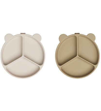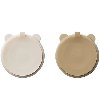 Vackra Liewood skålar säljs i 2-pack. Skålarna är formade som en björn med öron i vit och beige.