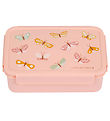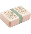 A Little Lovely Company matlådan av ett stort fack och matlådan hålls stängd med ett bra resår i mörkgrön, som sitter tvärs över matlådan mitt, i ett smalt spår så att den inte glider av.