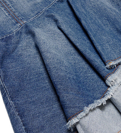 Snygg Marni kjol i blått, stentvättad denim i lätt, tätvävd kvalitet och med orange sömmar.