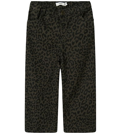 Vackra Name It jeans med leopardmönster i svarta och mörkbruna nyanser.