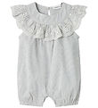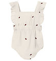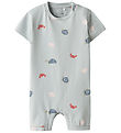 Härlig sommardräkt från Name It i ljusblå med ett sött tryck av bin och vita blommor. Sommardräkten har tunna stroppar och en resår i midjan som ger en bekväm passform. Det finns praktiska fickor på sidorna. Sommardräkten har korta ben och stängs med tryckknappar mellan benen.