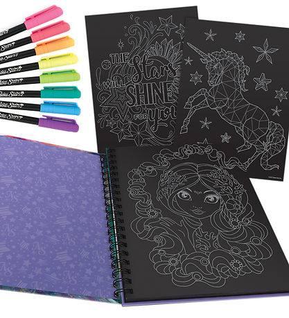 målarboken Nebulous Stars har en spiralformad rygg och innehåller: