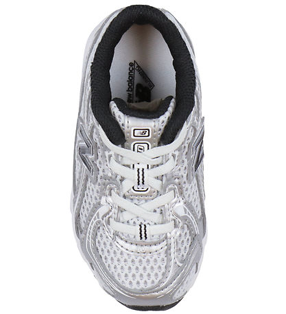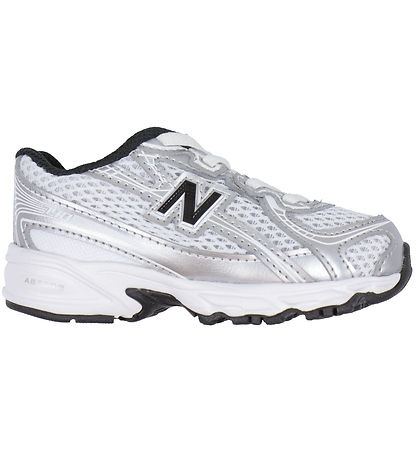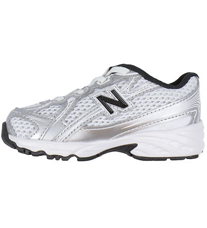 Fina New Balance skor i vit mesh och silver imiterat skinn med svarta logotyper på sidorna.