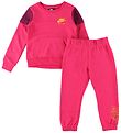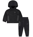 Härligt Nike sweatset bestående av en hoodie och ett par sweatpants. Hoodien är i ett fint grönt och blått mönster med 6-kanter ovanför och en logo på framsidan i reflex. Träningsbyxorna är enfärgad svart med en reflekterande logo på vänster höft.