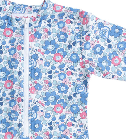 Smart Petit Crabe våtdräkt/baddräkt i vit, med ett vackert all-over blomstertryck i gröna, rosa och blå nyanser.