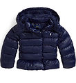 Polo Ralph Lauren dunjacka är en lång modell som går långt ner över rumpan, och den har en bred resår baktill, vilket ger en fin, figurnära passform. Den har en avtagbar huva, som Fast med dolda tryckknappar, och huvan har en smal resårkant på insidan. Ärmarna och nederkanten av jackan har inre resårkanter.
