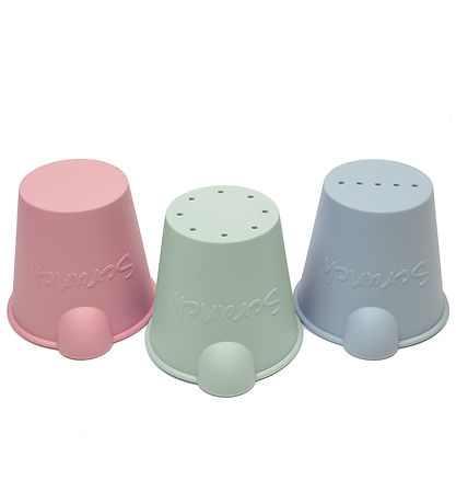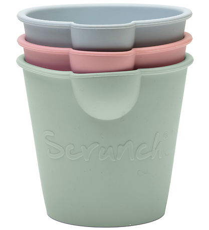 Scrunch badhinkarna är gjorda av vikbart silikon och är därför lätta att Have i strandväskan eller resväskan. Badhinkarna är lätta för små händer att hålla i och är ett klassiskt vattenspel, genom att hälla vatten från en behållare till en annan. Ett spann är helt solid och kan hålla vatten medan de andra två har olika hål i botten som vattnet rinner igenom.