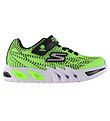 Skechers -skorna har resårband över fötterna och dras åt med ett kardborreband. Skorna har en förstärkt hälkappa med praktisk hälrem och bra stoppning i öppningen. Insidan är fodrad med textil och har mjuka, uttagbara innersulor.
