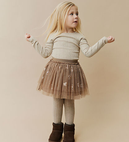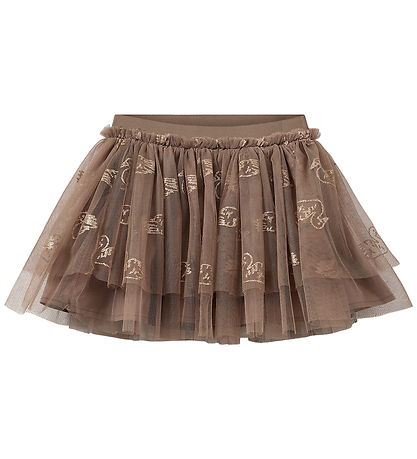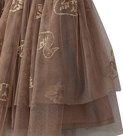 Elegant Sofie Schnoor kjol i brun tyll med ett vackert tryck av guldfärgade ankor. Sofie Schnoor kjolen består av en flerskiktad design som skapar en vacker volym.