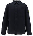 Stone Island skjortan har långa ärmar och breda kanter med en svart knapp. Det finns en klassisk krage vid halsöppningen och en bröstficka på vänster sida framtill. Skjortan stängs med svarta knappar.