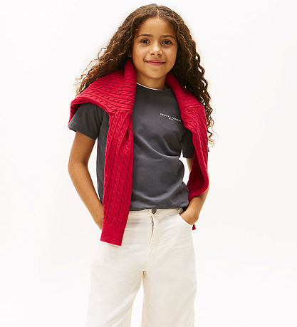 Snygg Tommy Hilfiger t-shirt i en klassisk grå färg. T-shirten har en diskret logo på bröstet, vilket ger en tidlös look. Tommy Hilfiger t-shirten är designad med rund halsringning och korta ärmar, och det finns en liten varumärke på sidan.