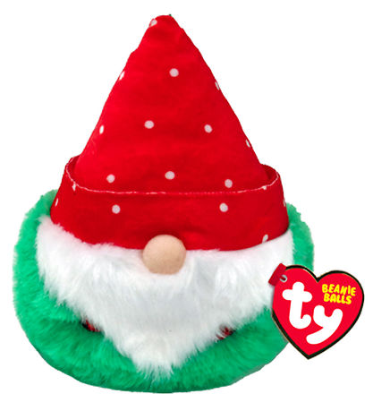 Söt Ty gosedjur i form av en tomte med gröna kläder och en röd mössa.